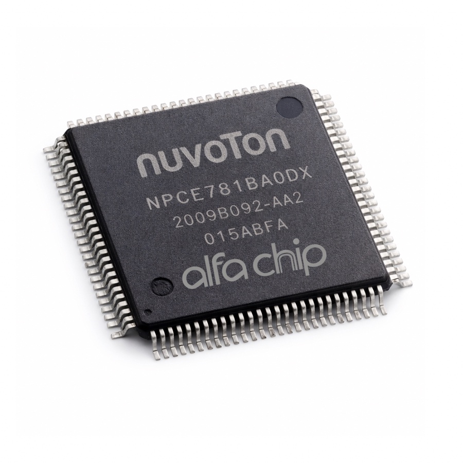 شريحة Nuvoton NPCE781BA0DX هي وحدة تحكم مدمجة (KBC / Embedded Controller) تُستخدم في اللوحات الأم للاب توب، وتُعد من أهم المكونات المسؤولة عن إدارة تشغيل الجهاز والتحكم في وظائفه الأساسية.