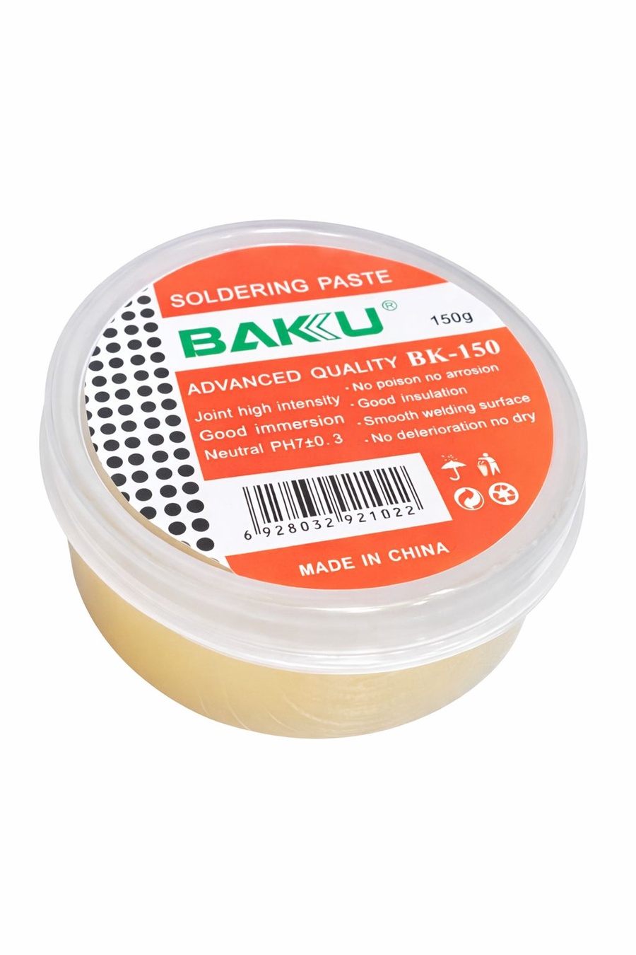 فلكس لحام BAKU BK-150 وزن 150 جرام فلكس احترافي لصيانة الموبايل واللابتوب، يوفر لحام نظيف وقوي بدون تآكل، مناسب للفنيين والمحترفين